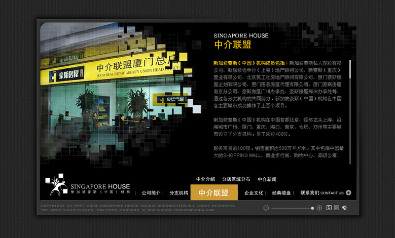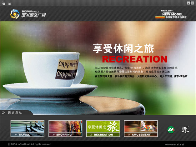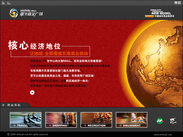 我们设计的第一个房地产项目网站,全国最大的SHOPPIN MALL,所以非常用心打造,全Flash动感页面最终赢得了客户的赞赏。
